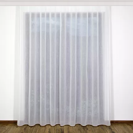 Gotowa do zawieszenia firana wykonana z materiału Etamina pozwala na odważne łączenie struktur w indywidualnych projektach. Jej jednolita struktura stanowi doskonałe tło dla aranżacji wnętrza, nie przytłaczając przestrzeni.