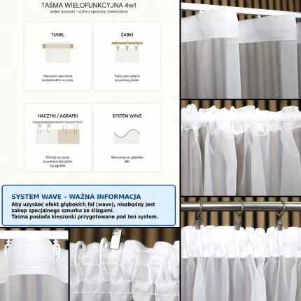 - Wykończenie góry: taśma marszcząca systemowa ( około 6 cm ).