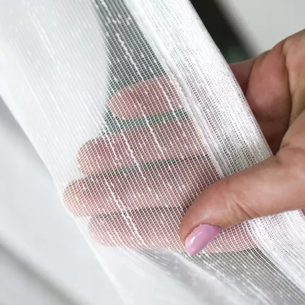 Aida to gotowa firana dla osób, które lubią lekkie wnętrza, ale nie chcą całkowicie gładkiej i bezwyrazowej tkaniny.