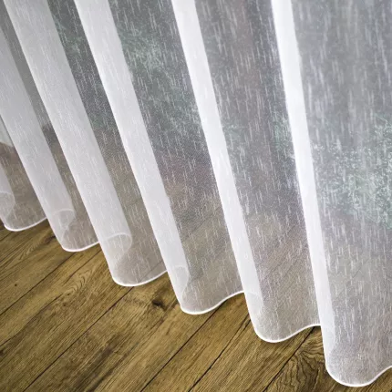 Model wyróżnia się subtelną, nieregularną strukturą inspirowaną naturalnym włóknem bambusowym. Dzięki temu firana wygląda lekko i nowocześnie, a jednocześnie ma bardziej dekoracyjny charakter niż klasyczny.