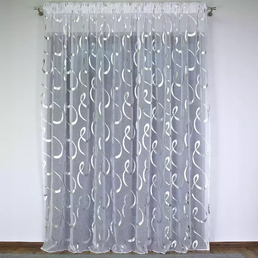 FIRANA GOTOWA ETAMINA BIAŁA NA TAŚMIE WAVE 300x250 cm GLAMOUR ŻABKI TUNEL