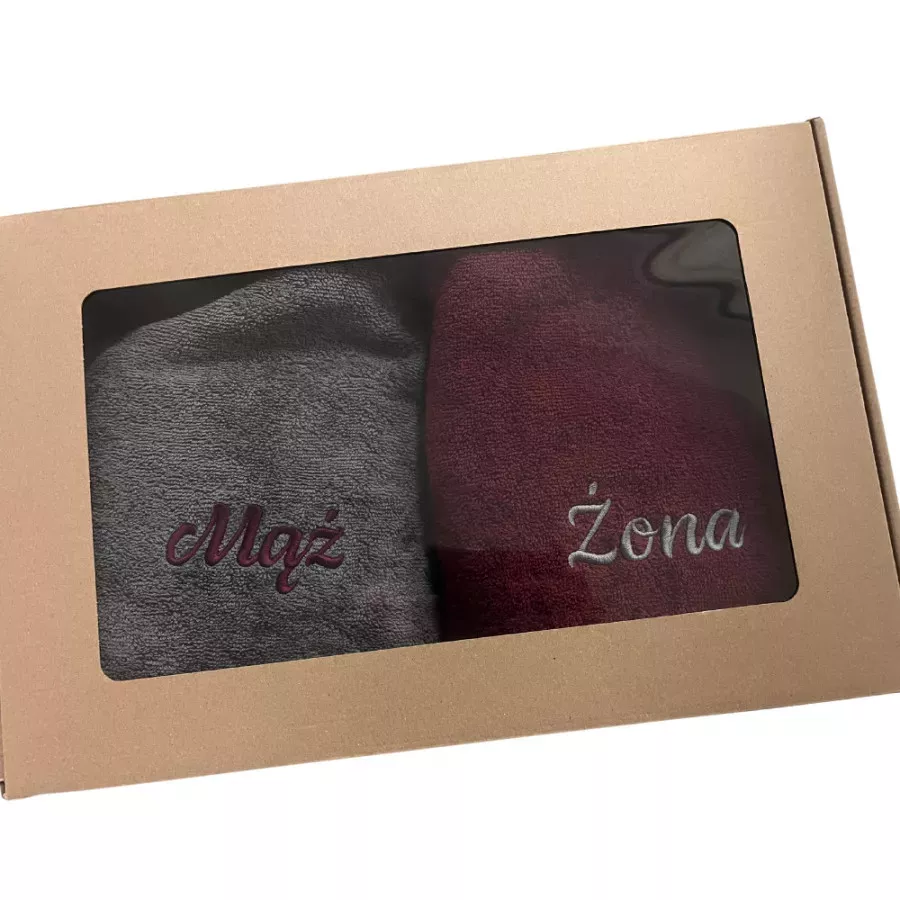 Komplet Ręczników Mąż Żona Szaro Bordowy Idealne na prezent