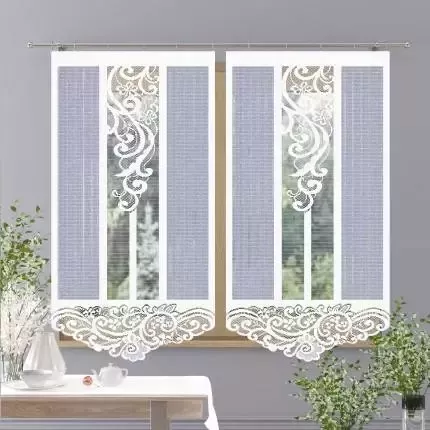 Firanka żakardowa w formie połączonych ze sobą paneli.